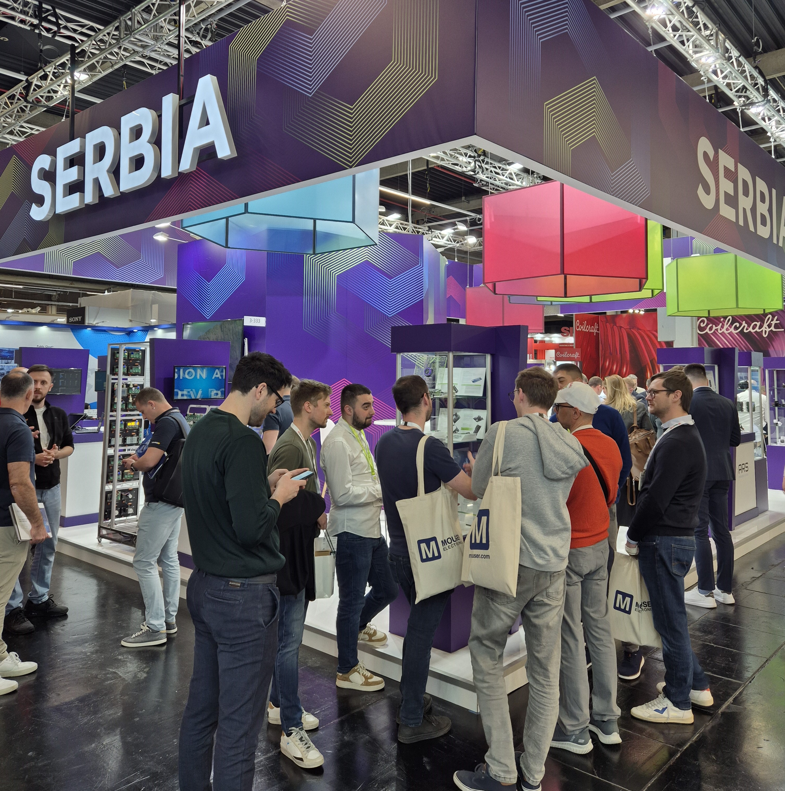 Ten Serbian companies are presenting their solutions at Serbia's national pavilion: Digital Logic, HS Devices, Veriest, ARS Embedded Systems, Bitgear Wireless Design Services, MikroElektronika, Advanced Security Technologies, RT-RK, CTRL+N, and Synchrotek.